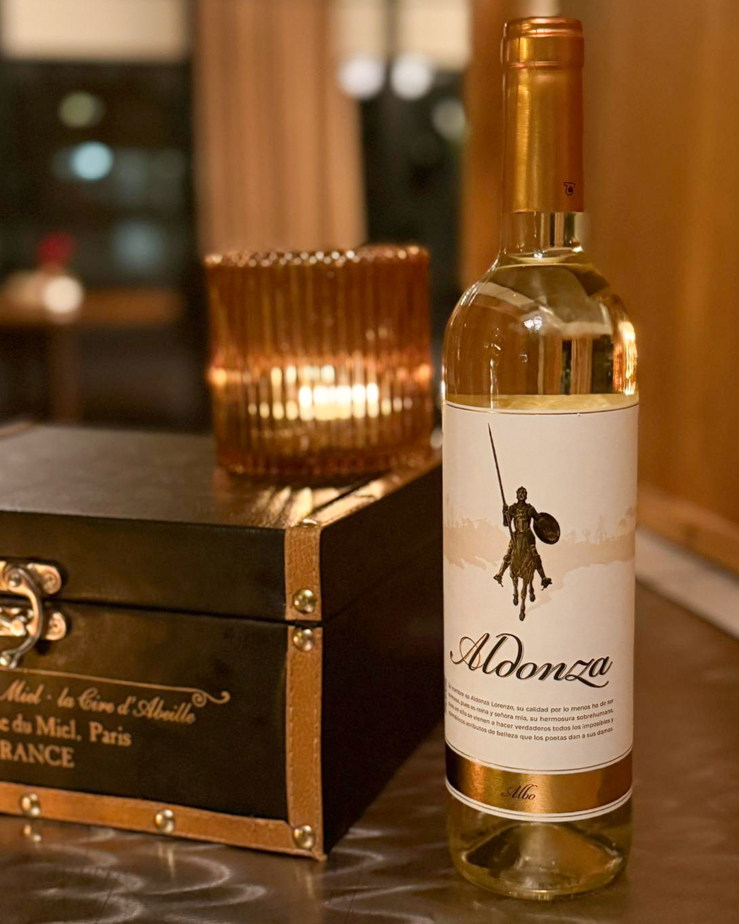 - Vino tinto Aldonza Clásico, con su profundidad y elegancia, acompañando conversaciones pausadas.